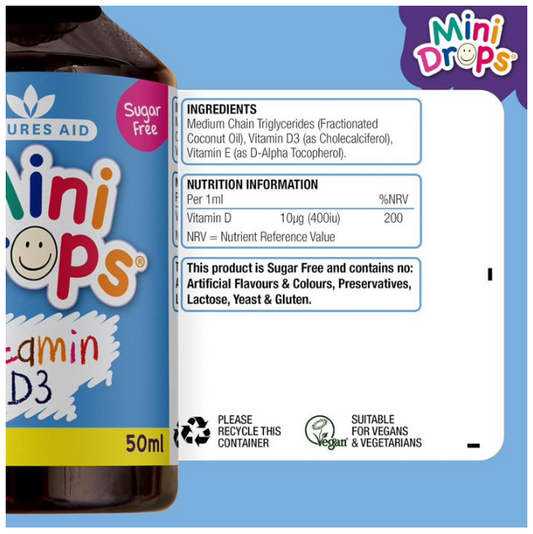 NATURES AID Mini Drops Vitamin D3 For Bone & Teeth Support 50ml (Newborn To 5 Years Old)