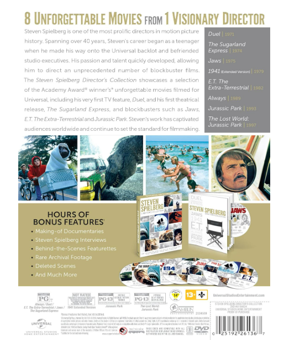 Steven Spielberg Director's Collection: Jaws/E.T. The Extra-Terrestrial/Jurassic Park/The Lost World: Jurassic Park/Duel/The Sugarland Express/1941/Always [DVD]
